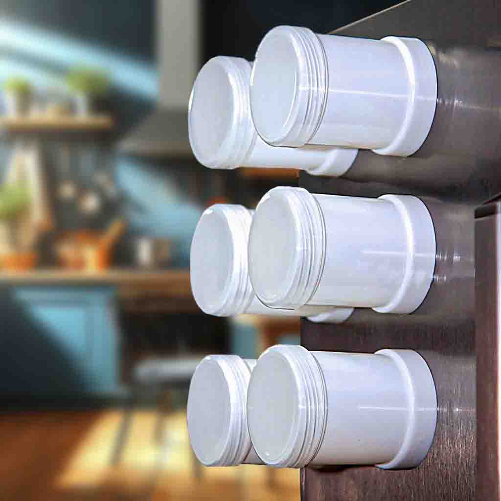 Com um imã na parte inferior, este pote pode ser facilmente fixado em superfícies metálicas, como geladeiras e bancadas de aço inoxidável, permitindo um acesso rápido aos temperos e alimentos essenciais enquanto cozinha ou trabalha em seu food truck. Isso economiza espaço e mantém seus ingredientes organizados e sempre à mão.